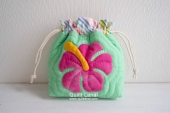 巾着ポーチ*ハイビスカス(ライム)*セット済み