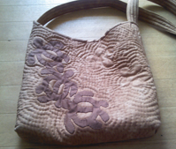★なつかしの国産ムラ染めココアで作られた斜め掛けバッグのお写真が届きました♪今はムラ染めのメーカーが変わりましたが、数年前はとても人気のカラーでした。『自分用にもう何年も前に買ったのですがなかなか手をつけられずにいて、やっと完成しましたのでメ−ルします。ハワイアンキルトの面白さを再認識しましたので、またどんどん、作って行きたいなと思っております。』とのことです。最後まで仕上げてくださり、本当にありがとうございます(^_-)-☆キルトラインのぷくぷく感がとてもきれいですね。是非これからもちくちくお楽しみください。画像にマウスを当てて裏面も見てね☆