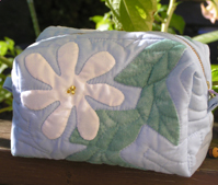 ★優しい色合いの大きめポーチを作られました。葉っぱのキルトラインがくっきりしているので1枚1枚が美しいですね。たくさん入るので、どんな使い方をされるのかとっても楽しみです(*^_^*)