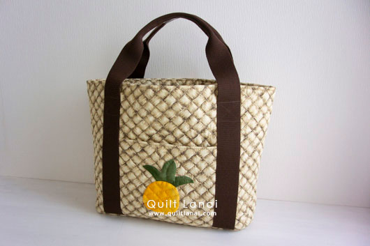 ライントートの外ポケット。ラウハラプリントと相性ぴったりのパイナッ プルのデザイン。