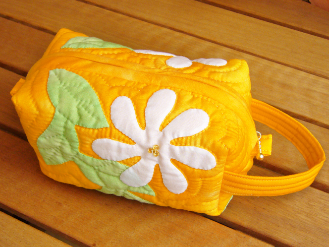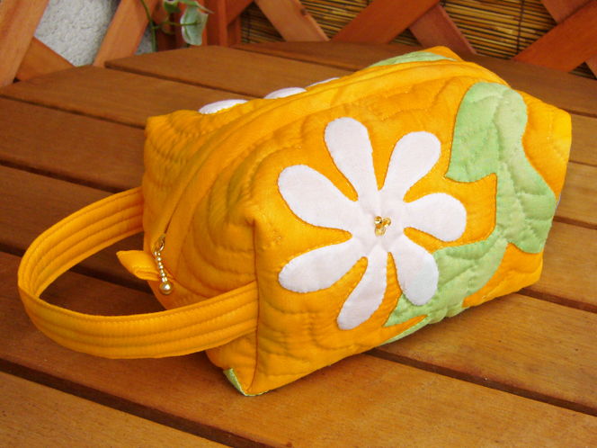 ・モチーフしつけ済み表布 ・キルト芯 ・裏打ち布(生成無地) ・仕立て済み持ち手 ・仕立て済みループ ・袋布用ハワイアンプリント ・パイピング ・ビーズ ・ファスナー ・作り方説明書 ・キルトライン図