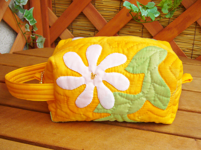 プルメリアのスクエアポーチLと葉っぱは同じで、お花をティアレに変えました。色使いが変わるとイメージが違って見えますね。プルダウンよりお好きなカラーをお選びください。糸つきキット1点または糸なしキット2点までネコポス便発送可能です。