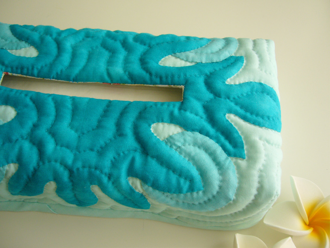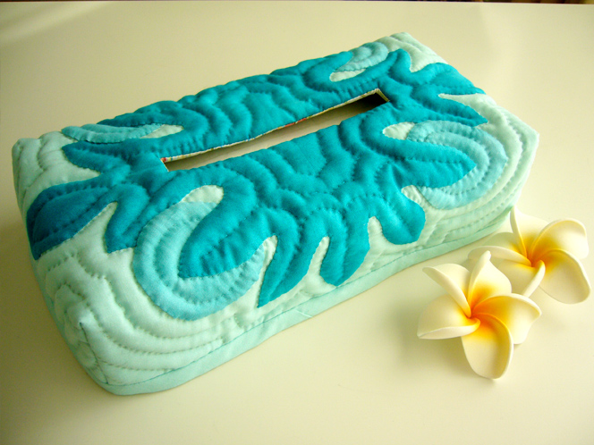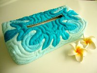 男性へのプレゼント用にリクエストをいただきデザインしたティッシュボックスカバー。パンの木(ウル)はとても縁起が良いモチーフです。