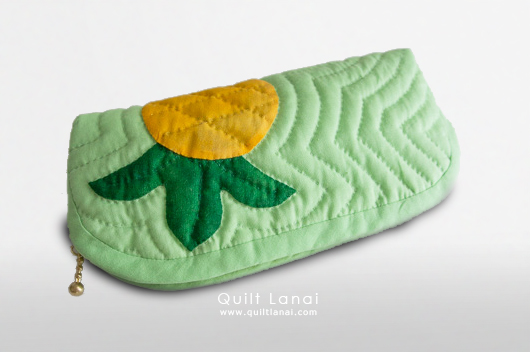 ・モチーフしつけ済み表布 ・キルト芯 ・裏打ち布(生成無地) ・袋布用ハワイアンプリント ・パイピング ・ファスナー(25㎝) ・作り方説明書 ・キルトライン図。
