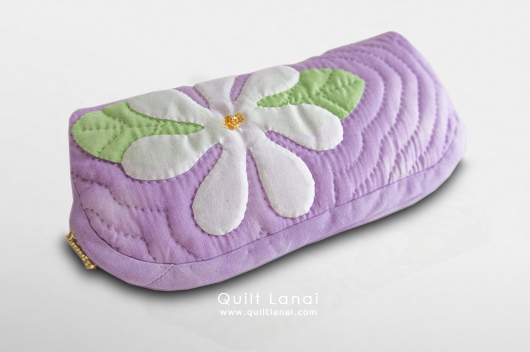 ・モチーフしつけ済み表布 ・キルト芯 ・裏打ち布(生成無地) ・袋布用ハワイアンプリント ・ファスナー(25㎝) ・ビーズ ・パイピング ・ファスナー(25㎝) ・作り方説明書 ・キルトライン図。