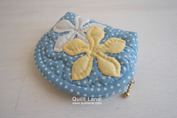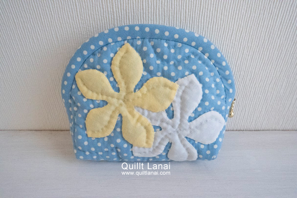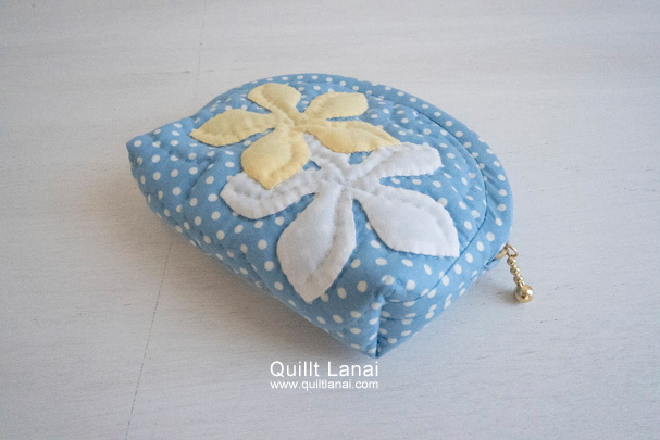 ドットプリントを土台布に使用したプルメリアのミニポーチキットです。