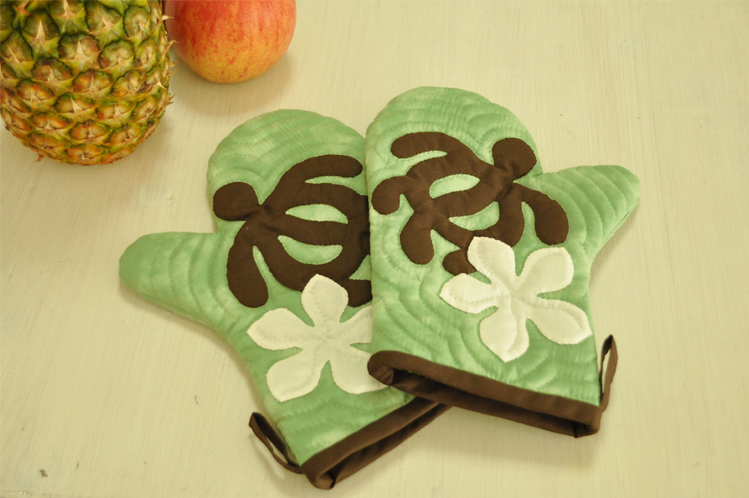 ミトン☆ホヌとプルメリア(シーグリーン)☆セット済み