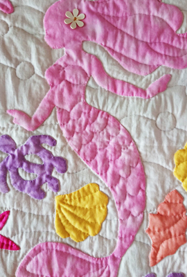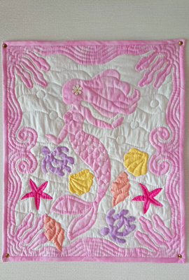 お客さまにリクエストいただきデザインしたマーメイドタペストリー。 ちょっぴりフラガールを意識したマーメイドがとても可愛いです♪