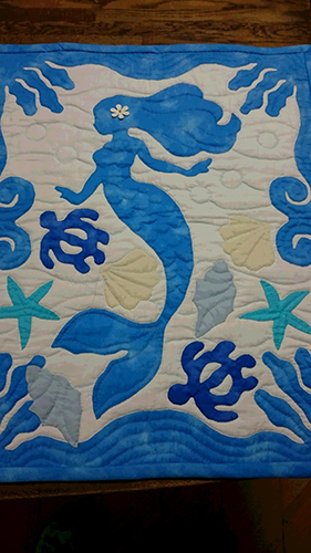 お客さまにリクエストいただきデザインしたマーメイドタペストリー。 ちょっぴりフラガールを意識したマーメイドがとても可愛いです♪
