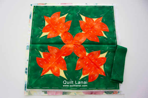 ・モチーフしつけ済み土台布 ・キルト芯 ・裏打ち布(ハ ワイアンプリント) ・パイピング布 ・作り方説明書 ・キルトライン図