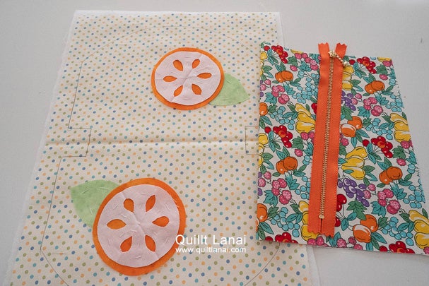 ・モチーフしつけ済み表布 ・キルト芯 ・裏打ち布(生成無地) ・袋布用ハワイアンプリント ・ファスナー ・作り方説明書 ・キルトライン図