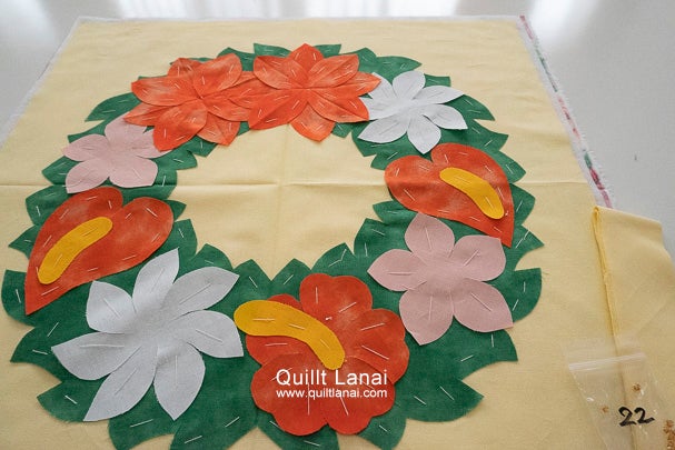 ハワイアンリースのタペストリーのセット済みキットです。