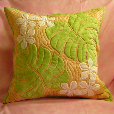 クッション用裏当て布はラウハラ模様のハワイアンプリントをお付けします。