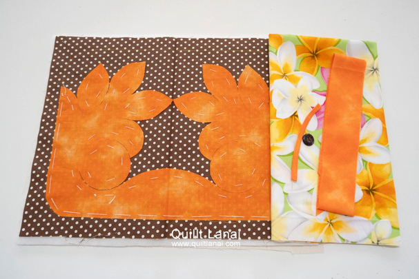 ・モチーフしつけ済み土台布 ・キルト芯 ・裏打ち布 ・ハワイアンプリント(仕切り用内布) ・パイピング用布 ・仕立て済みループ ・ココナッツボタン ・作り方説明書 ・キルトライン図