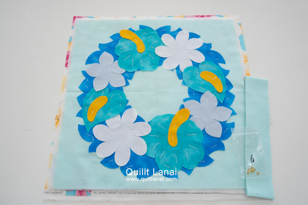 ハワイアンリースのミニタペストリーのセット済みキットです。