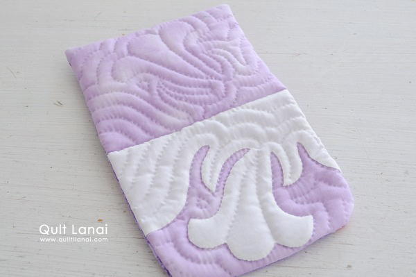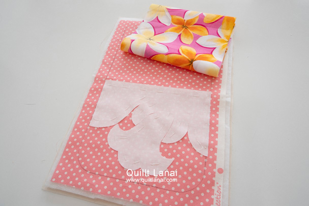 ・モチーフしつけ済み表布 ・キルト芯 ・裏打ち布(無地) ・内布用ハワイアンプリント ・作り方説明書 ・キルトライン図