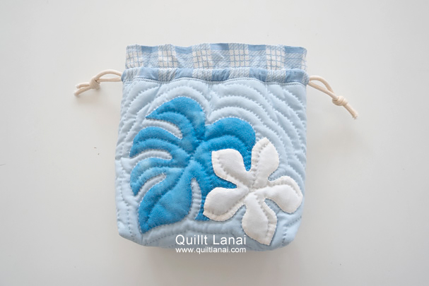 巾着ポーチ*モンステラとプルメリア(パウダーブルー)*セット済み