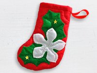 ヒイラギとプルメリアをデザインしたクリスマスミニブーツはツリーオー ナメントとして飾れる可愛いミニサイズ。サンタさんへのお手紙を入れたり、キャンディやガムを入れてもいいですね。