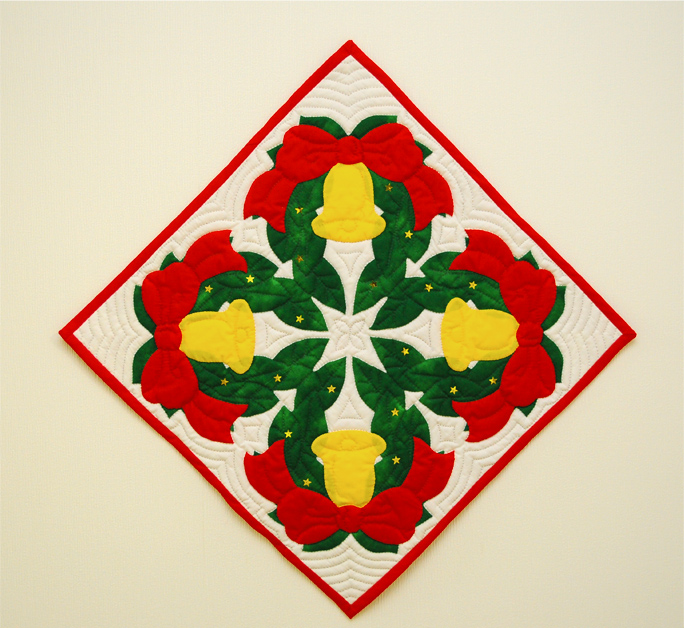*見本作品は落としキルト、エコーキルトにラメ糸を使用しています。