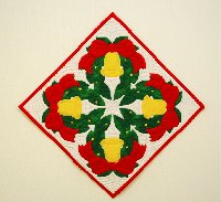 ・モチーフしつけ済み表布 ・キルト芯 ・裏打ち布(ハワ イアンプリント) ・パイピング布 ・星型スパンコール ・作り方説明書 ・キルトライン図