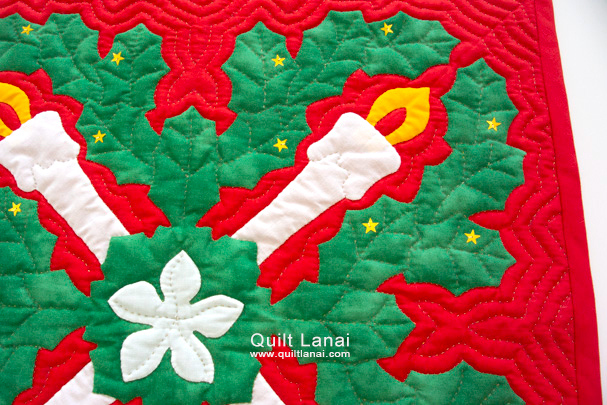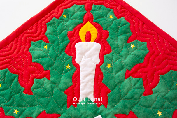 リースのようなヒイラギはキルティングを入れると立体感が出てきます♪